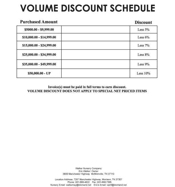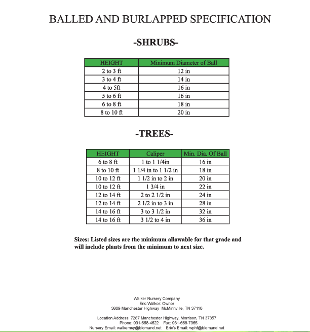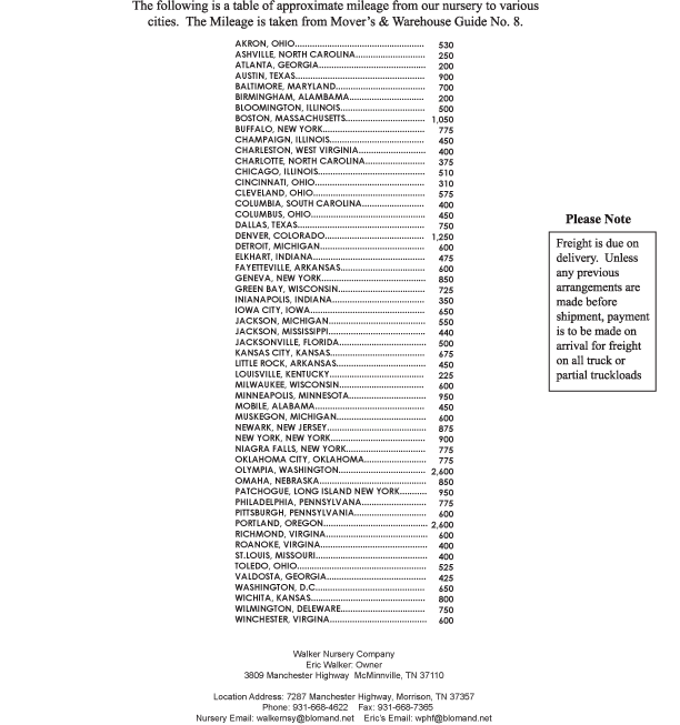 For a downloadable version of the Walker Nursery Shipping & Rates